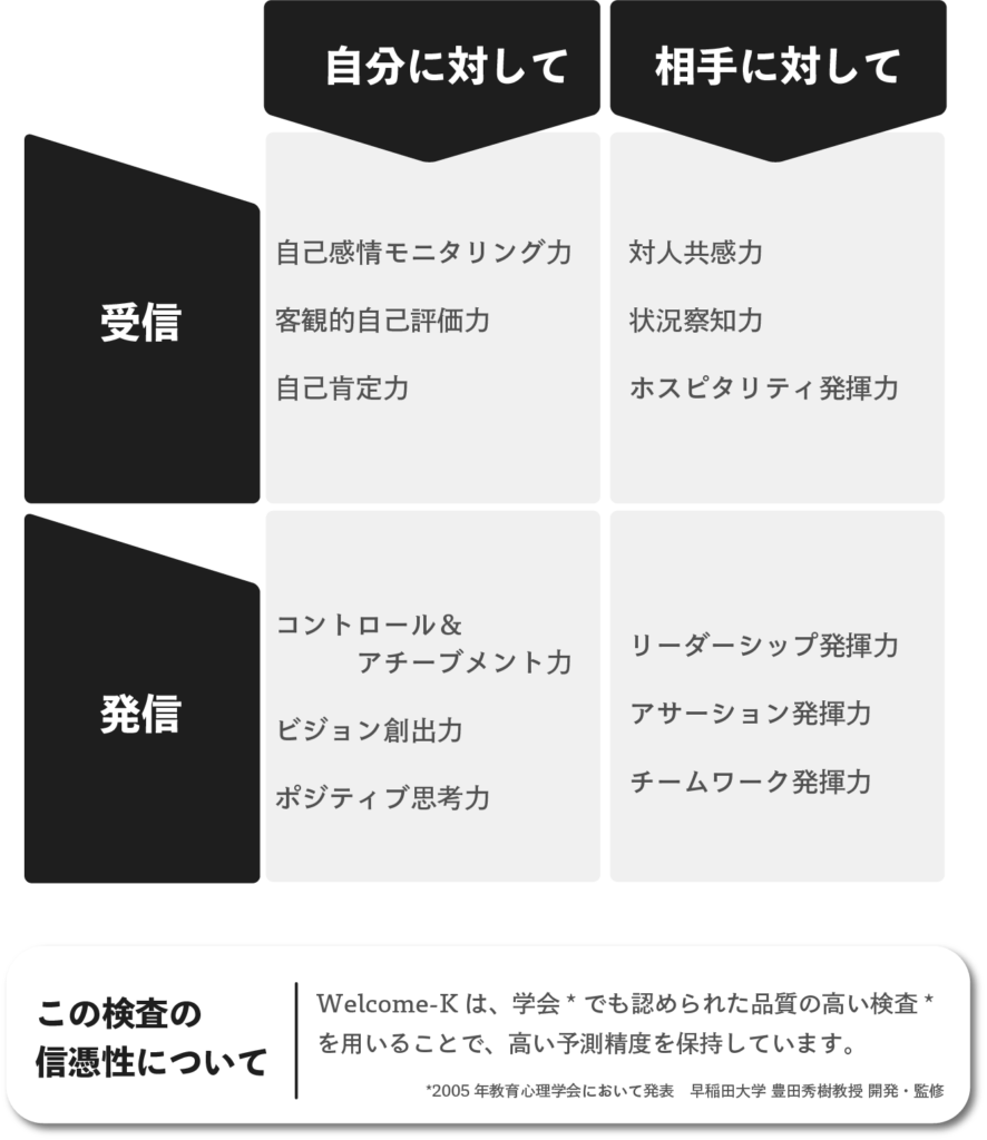 Welcome-Kと同じく学会で認められた高精度の適性検査です。